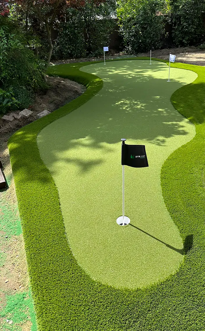 Artificial putting greens are custom-designed and made from advanced synthetic turf that mimics the feel, roll, and performance of professional golf course greens. Unlike traditional greens that require constant watering, mowing, and fertilizing, artificial golf greens from SYNLawn Georgia maintain their perfect condition year-round. They are ideal for both residential and commercial spaces in Atlanta, offering golfers a consistent and professional-quality surface with minimal maintenance.